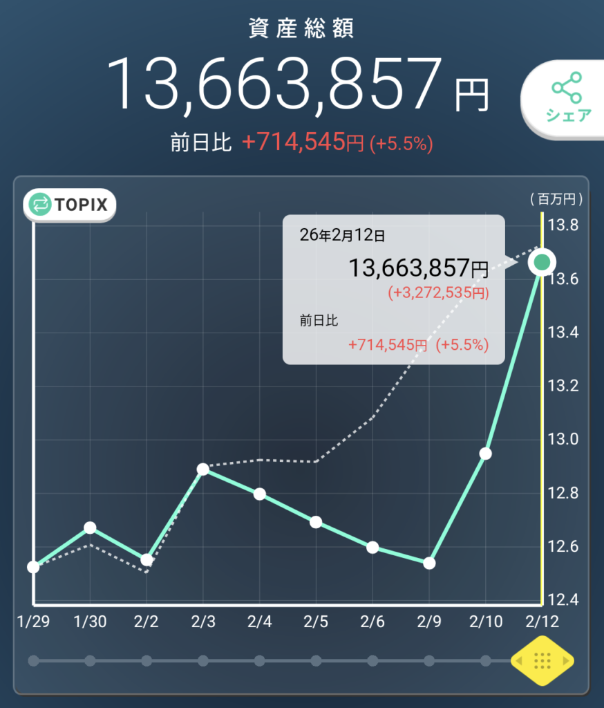ミークやインテグラルを切って、資金をこちらに集中させた判断(リバランス)が大正解でした。