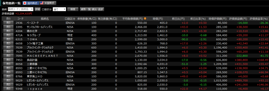 【攻め】日本株個別株の状況