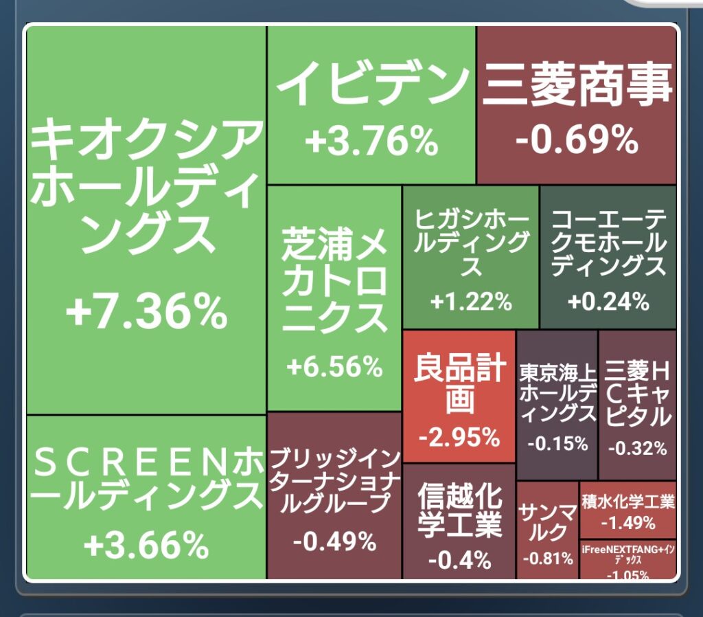 先週ナンピンしたイビデンもしっかり上がってくれましたし、何よりキオクシアの強さが際立っています。需給が良くなり、売り圧力が消えたような軽い動きです。
