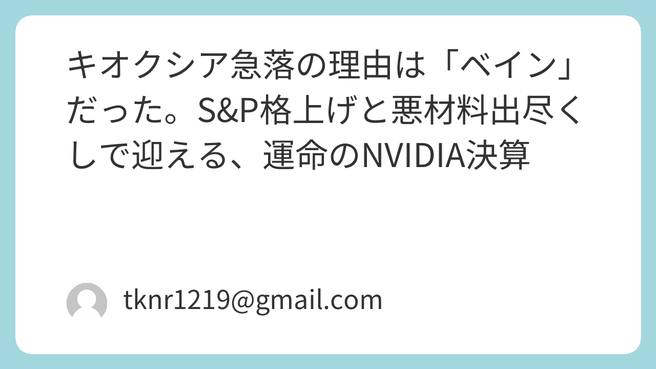 キオクシアの視界は良好になりましたが、明日の相場を決めるのは間違いなくNVIDIAの決算(日本時間・明日早朝)です。