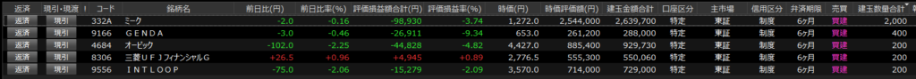 見ての通り、三菱UFJ以外、すべて含み損です。